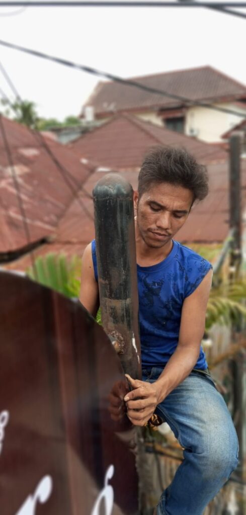 Ridwan Alumni SLBN 1 Harau sudah bekerja memasang billboard